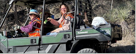 Friends of Inks Lake recently worked to beautify and area of Park Road 4 adjacent to Inks Lake State Park. Pictured are: Karen Stewart, Sue Davis and Matt Jary, who were part of a crew of dozens of volunteers. Contributed/Julie JaryIngrid Hoffmeister and Margaret Schelde in the ATV, and Matt Jary, Julie Jary and Sue Davis. Contributed/KLS