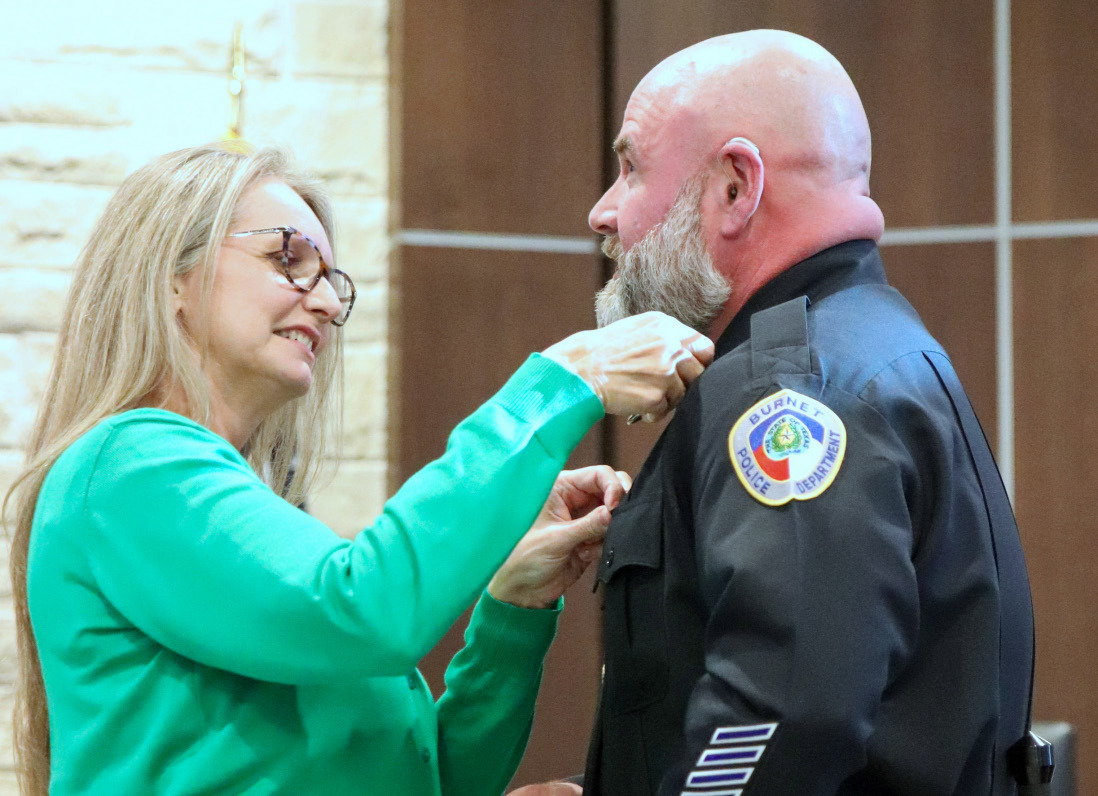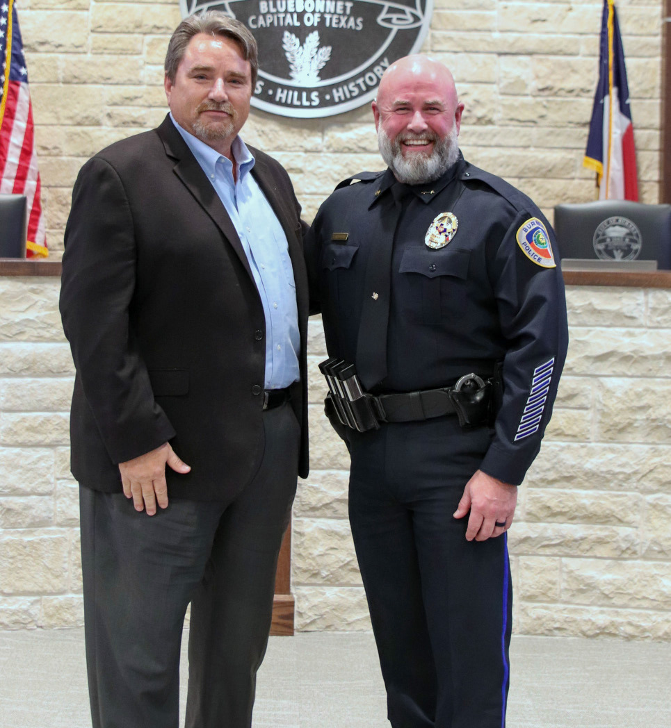 Officers and colleagues from the Burnet Police Department stood alongside friends from Hefferin’s previous department with the City of Bellaire, underscoring the professional respect and relationships he brings with him to Burnet.