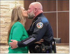 Directly after the badge was pinned, the couple shared a brief kiss before turning to face a room filled with applause from family, friends, colleagues and community members symbolically sealing the swearing-in.