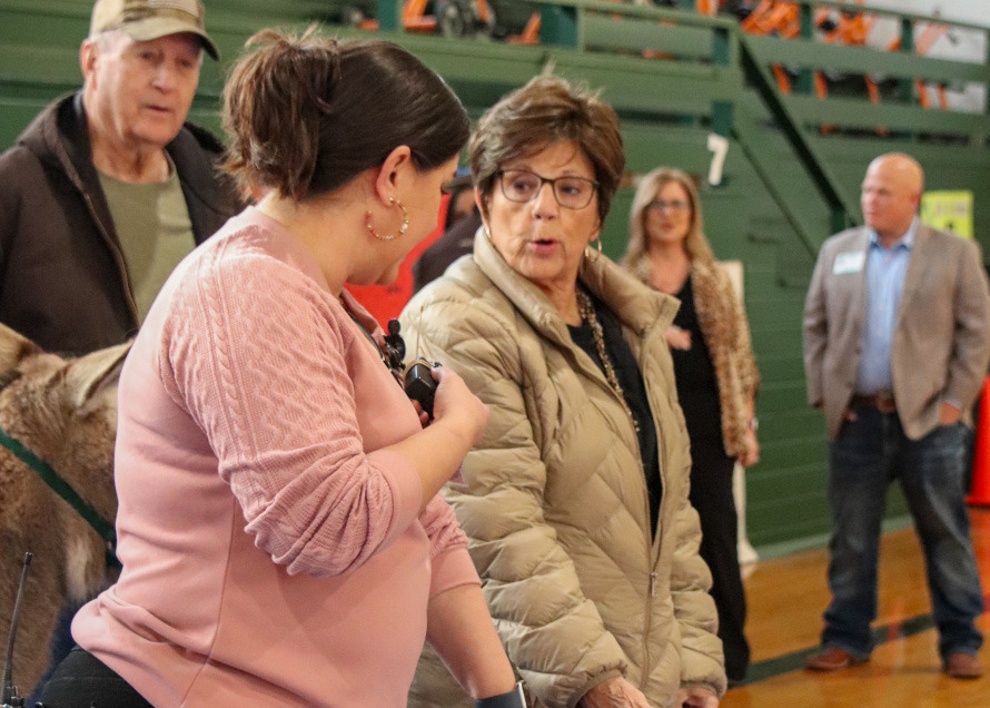 Owners Skip Oertli and Patsy Oertli brought Pawnee into the gym, a move indoors prompted by the cold weather outside.