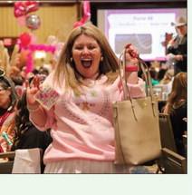 Cindy Cox, a Burnet High School teacher, danced her way back to her table, clutching her winning bingo card in one hand and her new purse in the other. Find the story and more photos on Page 3.