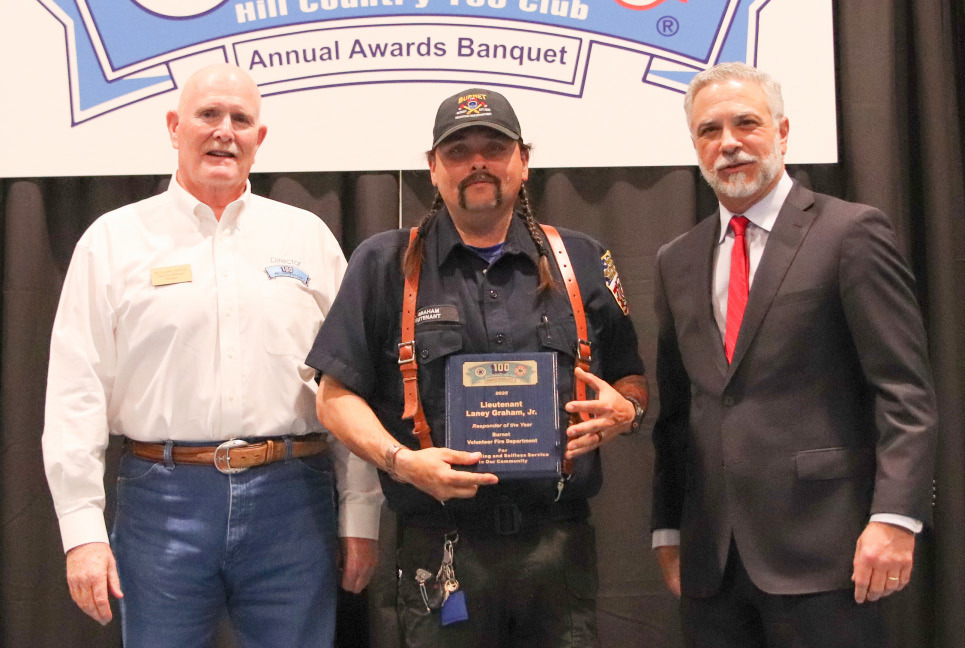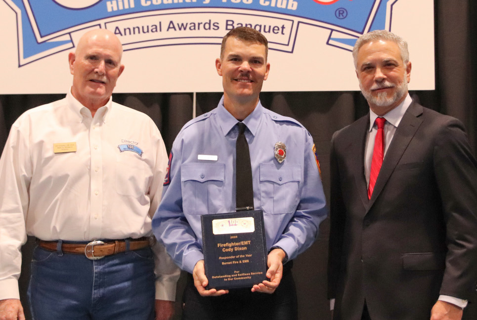 Following Garrett’s remarks, the Hill Country 100 Club presented its annual Responder of the Year Awards, recognizing individuals from agencies throughout Burnet County and the Highland Lakes region.