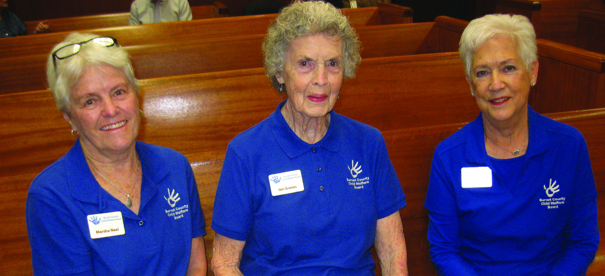 From left, Burnet County Child Welfare Board members Marsha Neel, Jan Graves and Caroline Ragsdill observed the Burnet County Commissioners during their April 14 as they declared April Child Abuse Awareness Month. Raymond V. Whelan/Bulletin